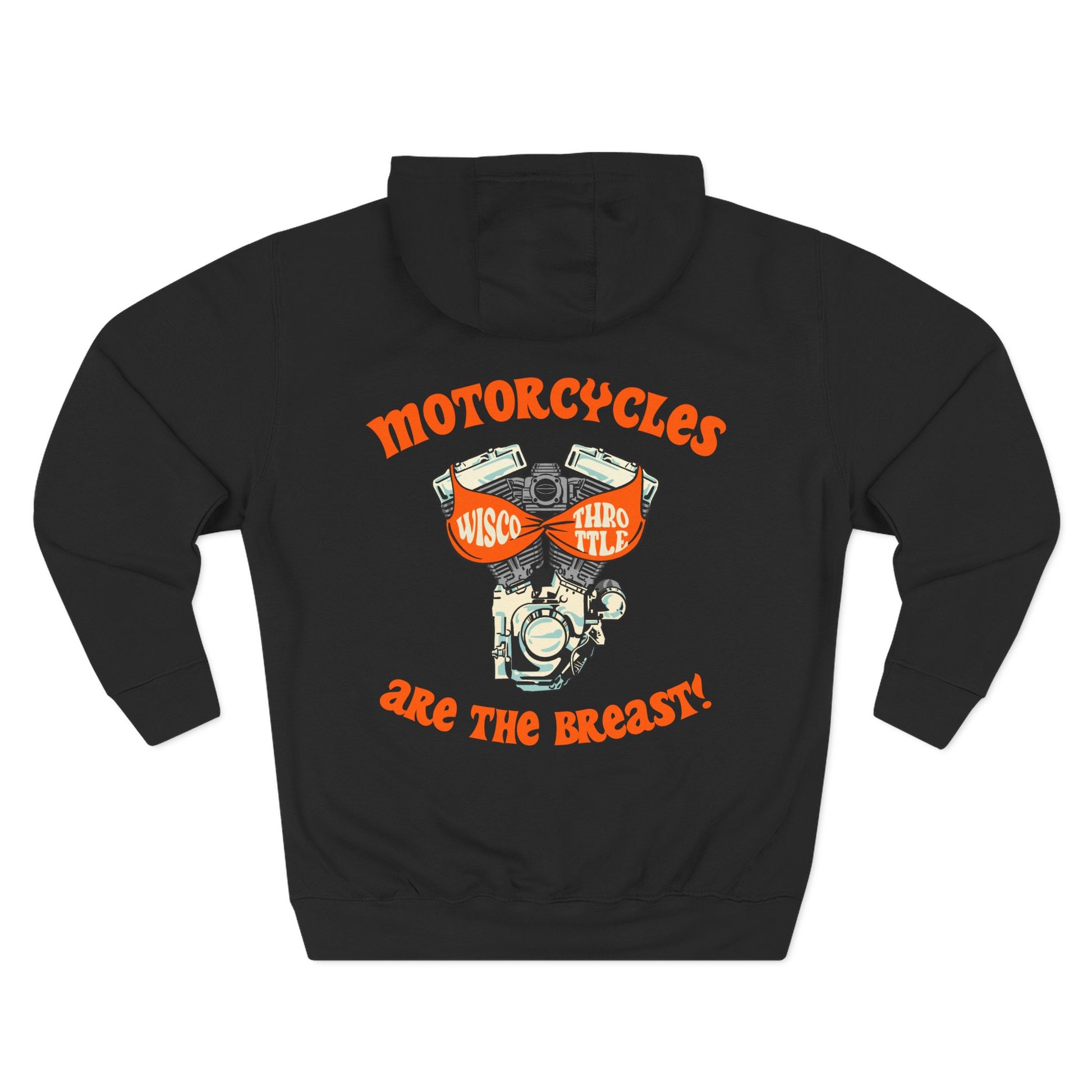 Who doesn't love a good set of (Harley) jugs? Perfect hoodie for the upcoming colder weather! This hoodie is very soft and cozy, made with three panel fleece lining - not your typical boxy cotton hoodie. Small WT logo on the front chest area, with the "Motorcycles are the BREAST!" on the back. Unisex sizing, S-3XL.