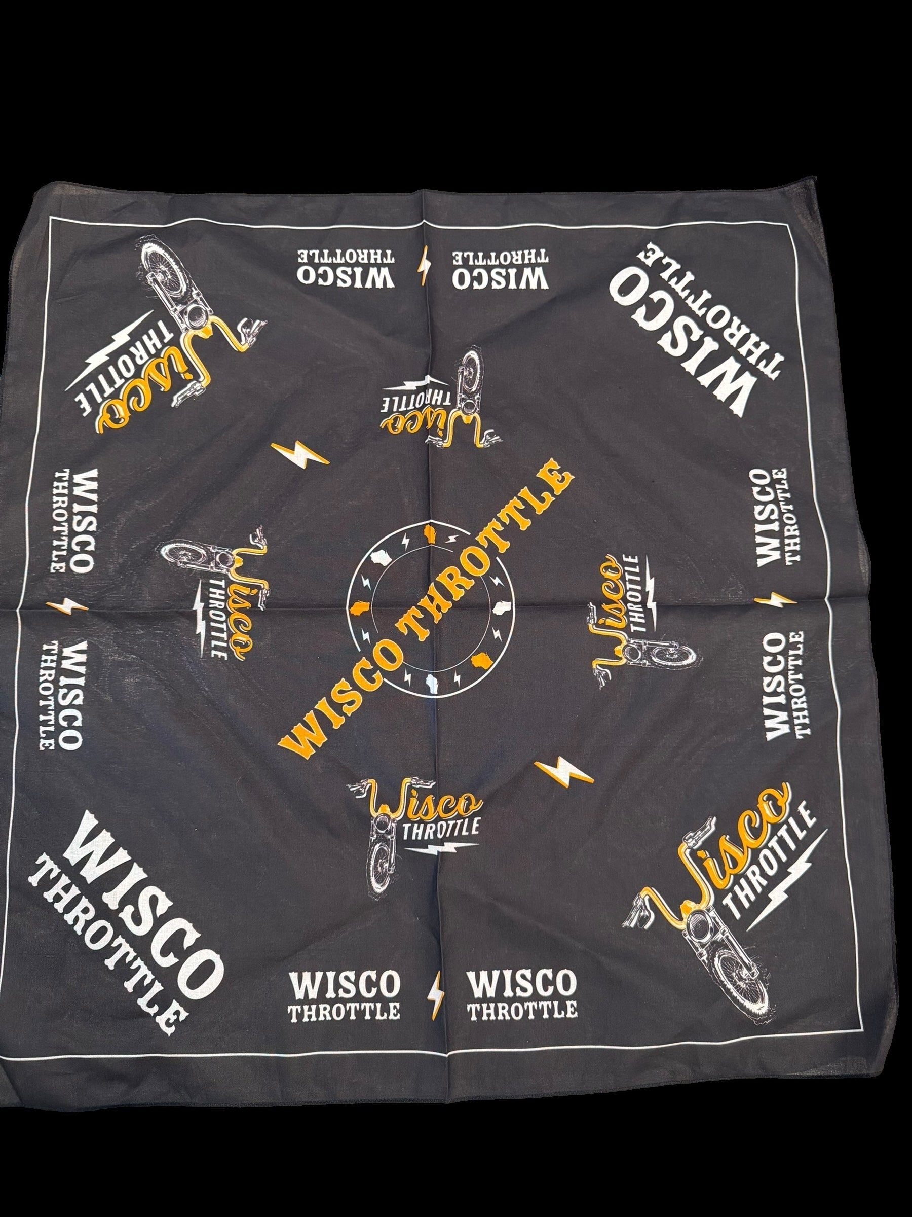 Our first ever Wisco Throttle bandana. These are 22in x 22in, with our logos printed all over strategically. This allows you to wear it numerous ways with showcasing WT in different ways!